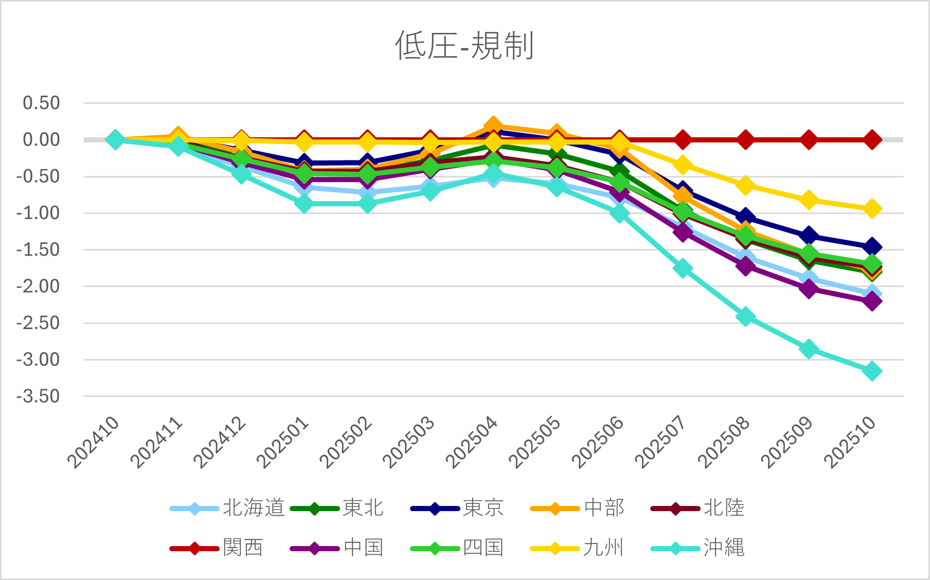 ・先月同様、上限に張り付いていた九州-規制燃調は、下落傾向が続いている。