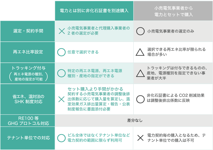 表. 非化石証書調達方法別のメリット等
