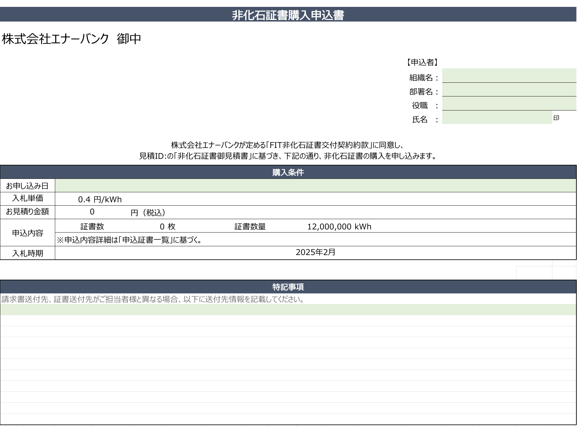 非化石証書購入申込書の受領後に、弊社から非化石証書購入承諾書を送付します。