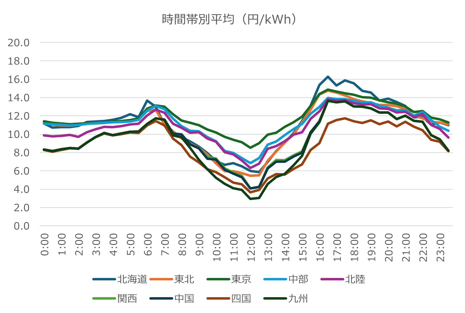 しかし夜間では東京、中部、北陸エリアで価格上昇が見られます。